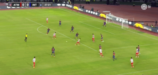 第35分钟,卡洛斯-马丁禁区内灵巧半转身后打近角得手,马竞1-0国米