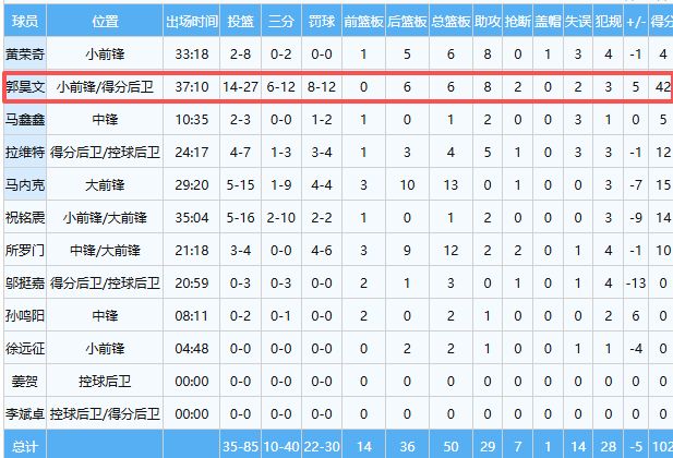 第三人便是南京男篮的锋卫摇摆人郭昊文,本场比赛他出战37分钟27中14三分球12中6爆砍全场最高的42分8助攻6篮板2抢断全面数据,郭昊文差点掀翻广东男篮,末尾连续点名依靠个人能力军训对手,展现出色的控球、投射和串联能力。也难怪此前会有NBA球队给他训练营合同,看来,郭昊文还真有两把刷子。